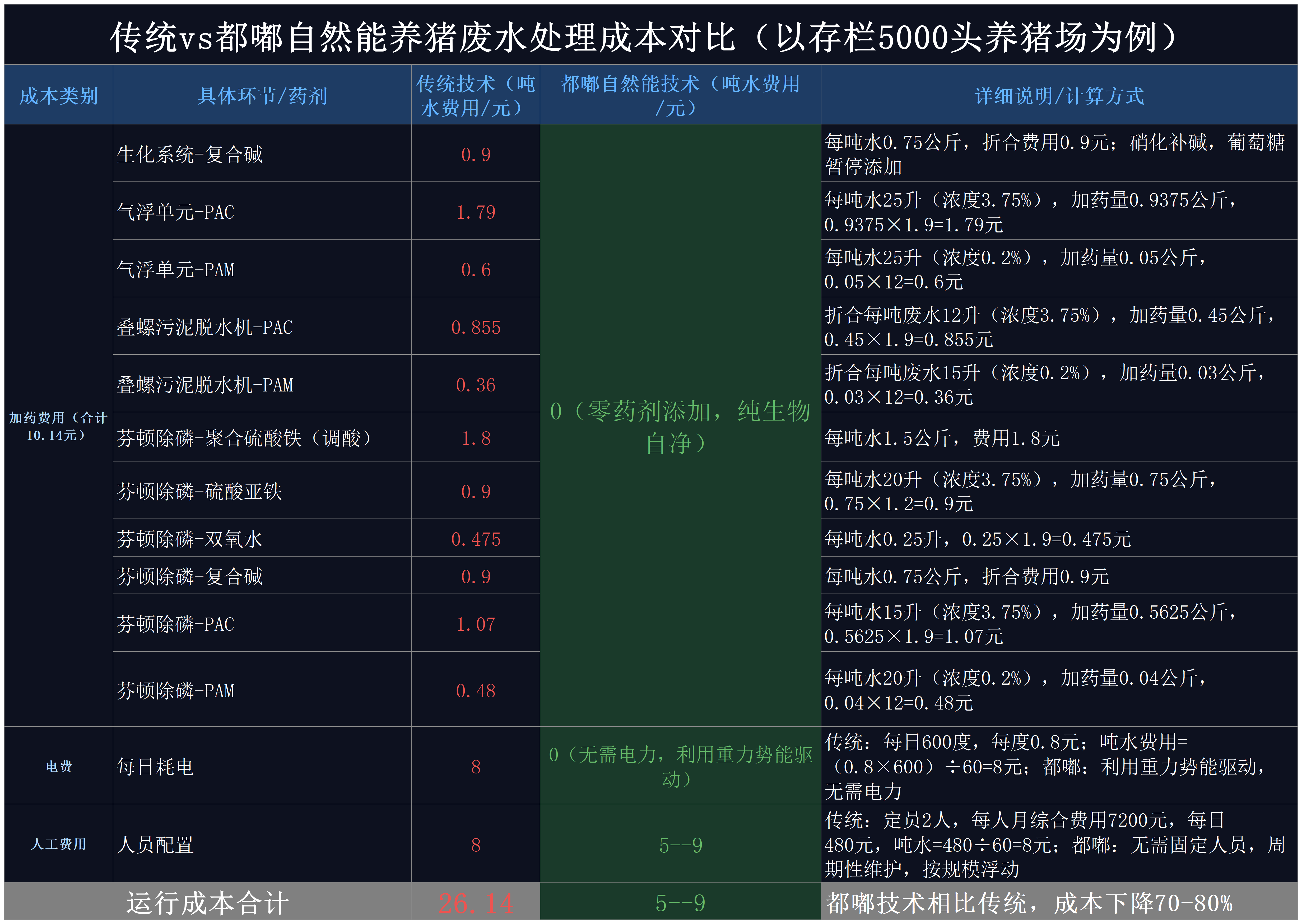 | 化学药剂费 (除磷/碳源) | 约 10 元 / 每立方水 | 0 元